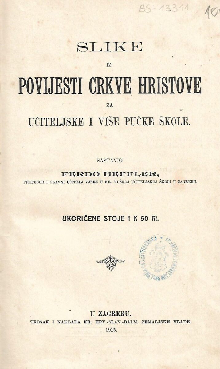 Ferdo Heffler: Slike iz povijesti crkve Hristove za učiteljske i više pučke škole