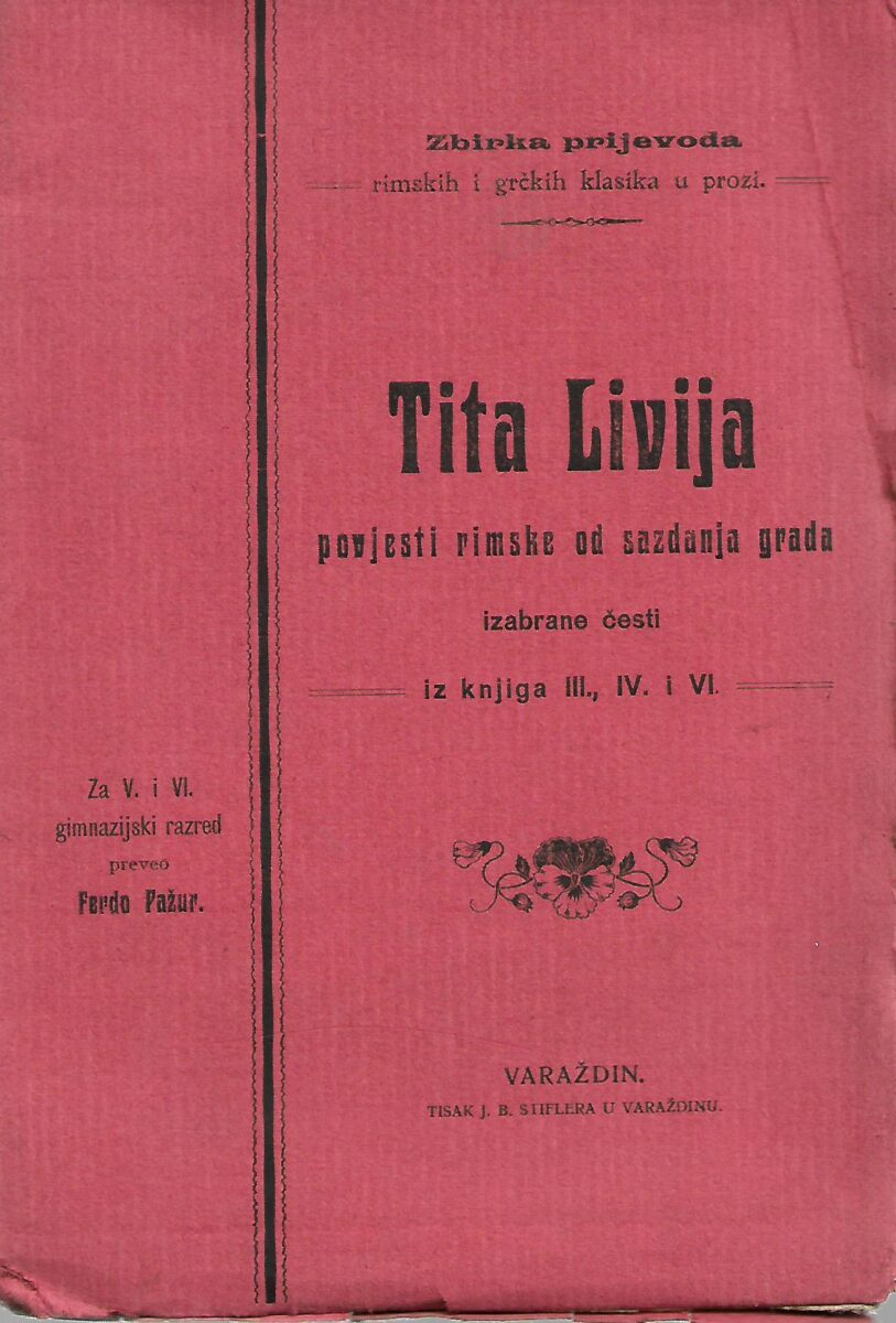 Izdavač i godina: Naklada i tisak J. B. Stiflera u Varaždinu