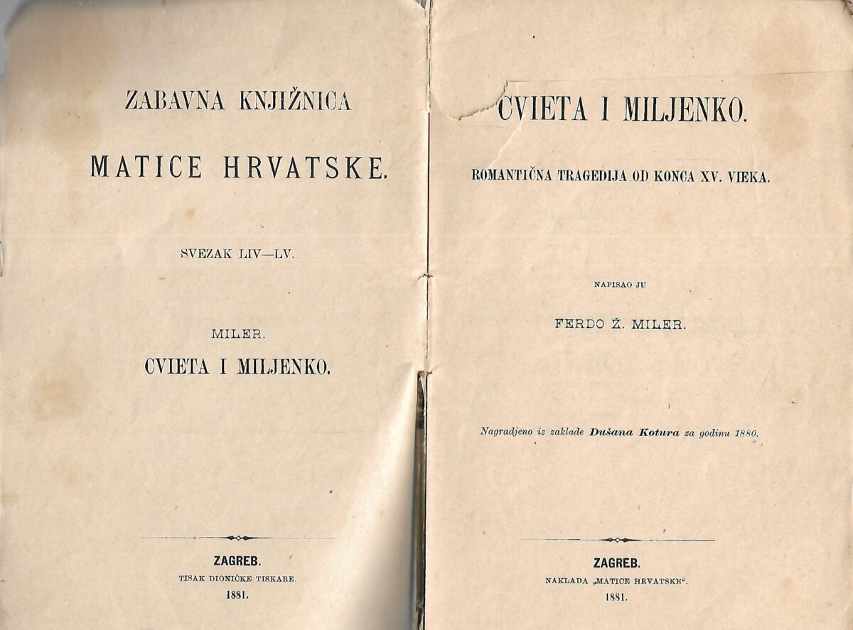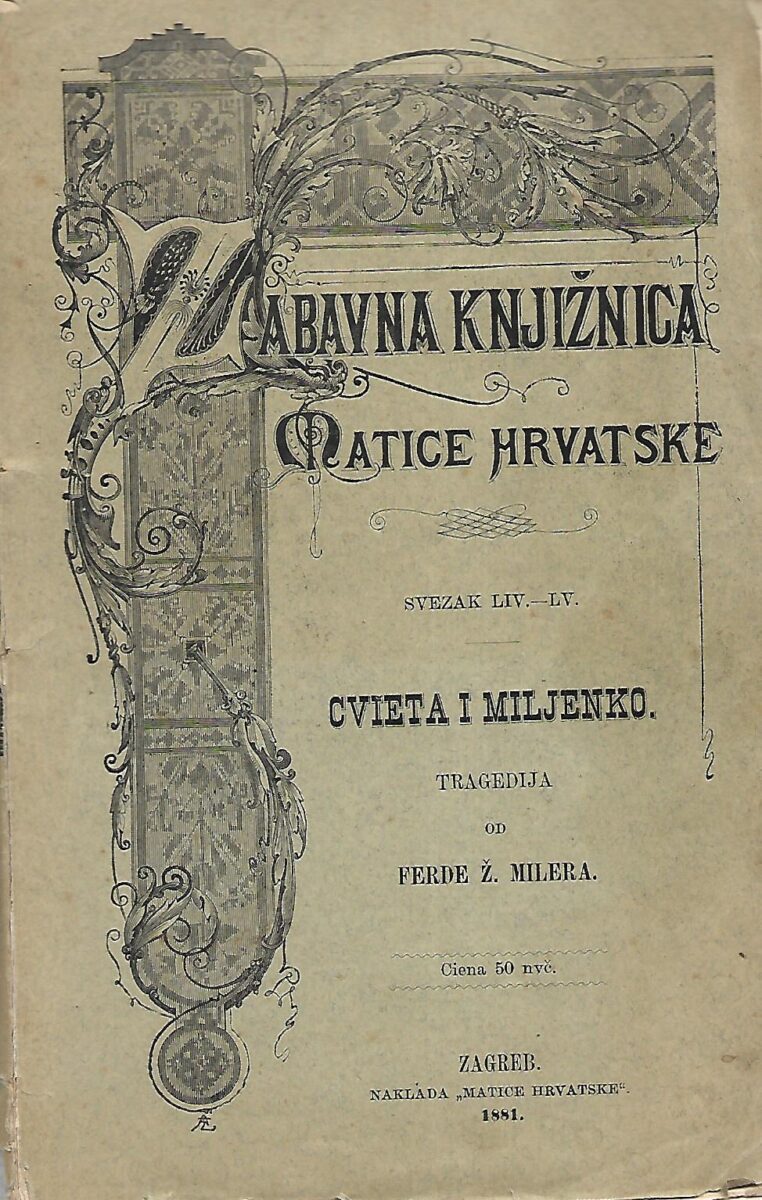 Zabavna knjižnica Matice hrvatske- Cvieta i Miljenko romantična tragedija od konca XV. vieka