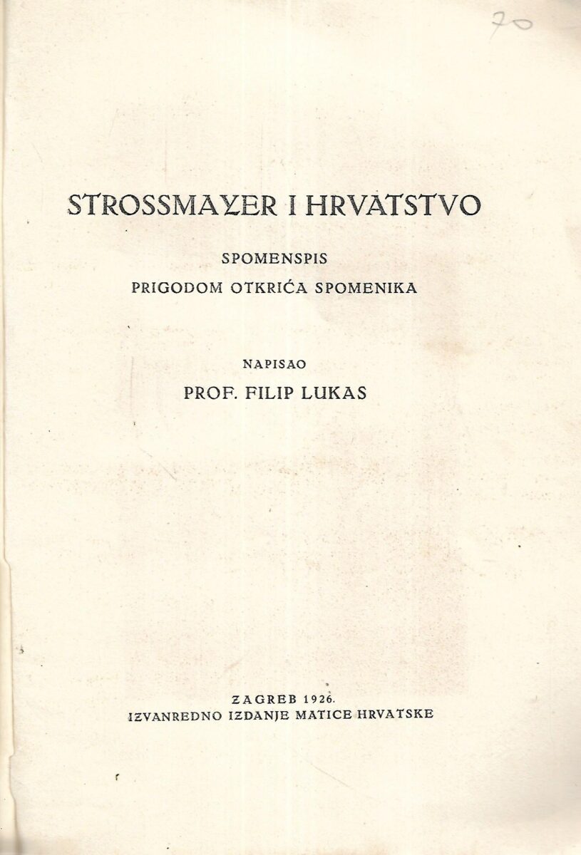 Izdavač i godina: Izvanredno izdanje Matice hrvatske, 1926.