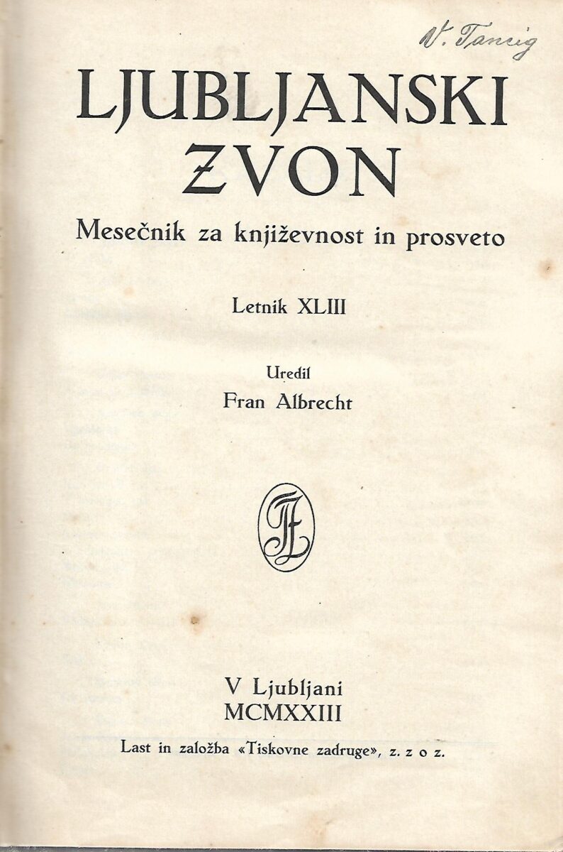 Fran Albrecht (ur.): Ljubljanski zvon – Mesečnik za književnost in prosveto – Letnik XLIII