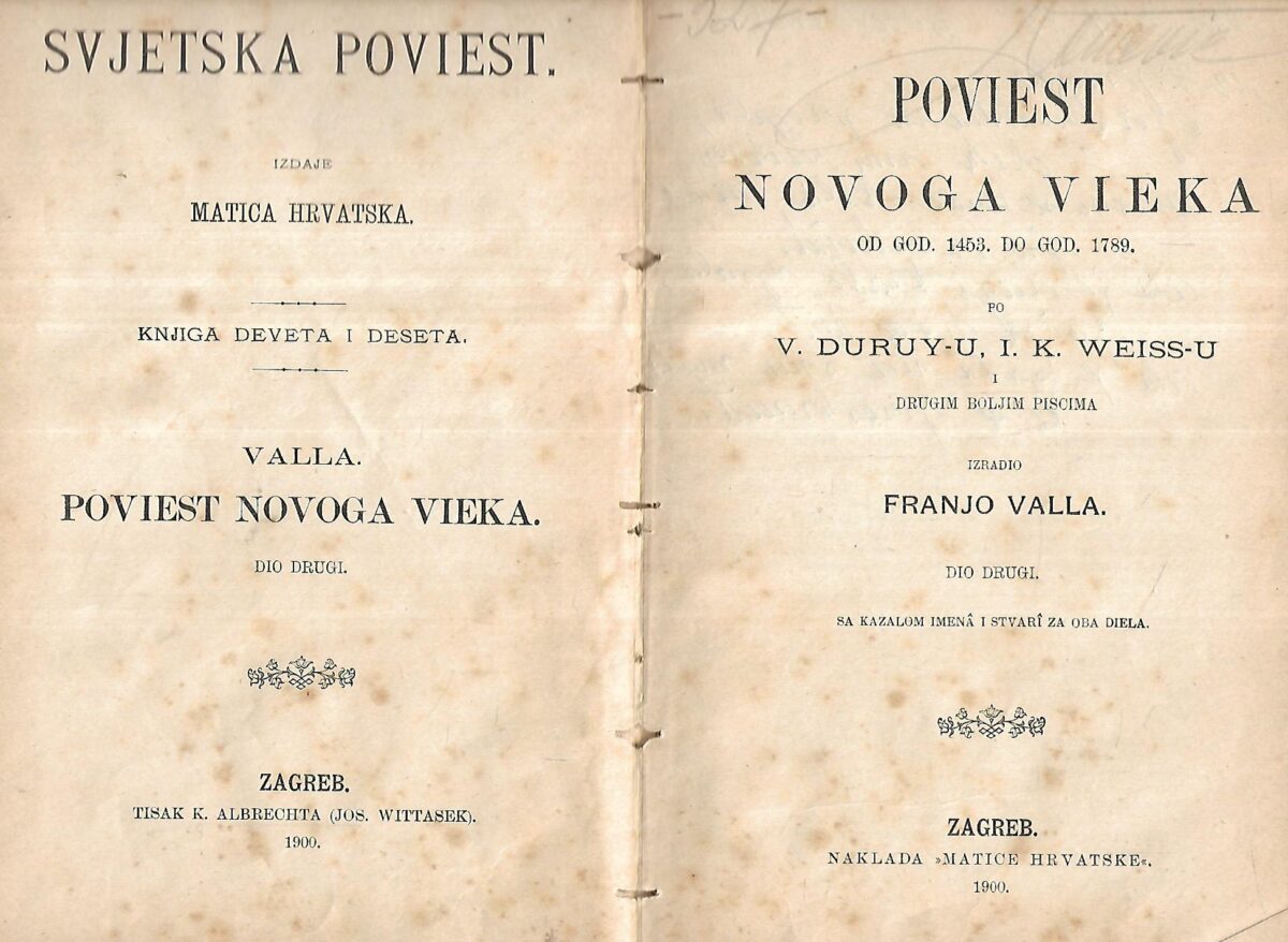 Izdavač i godina: Matica hrvatska, 1900.