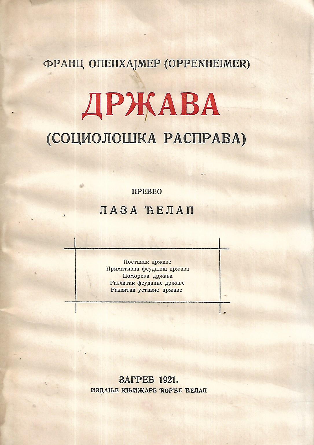 Franz Oppenheimer: Država : sociološka rasprava (ćirilica)