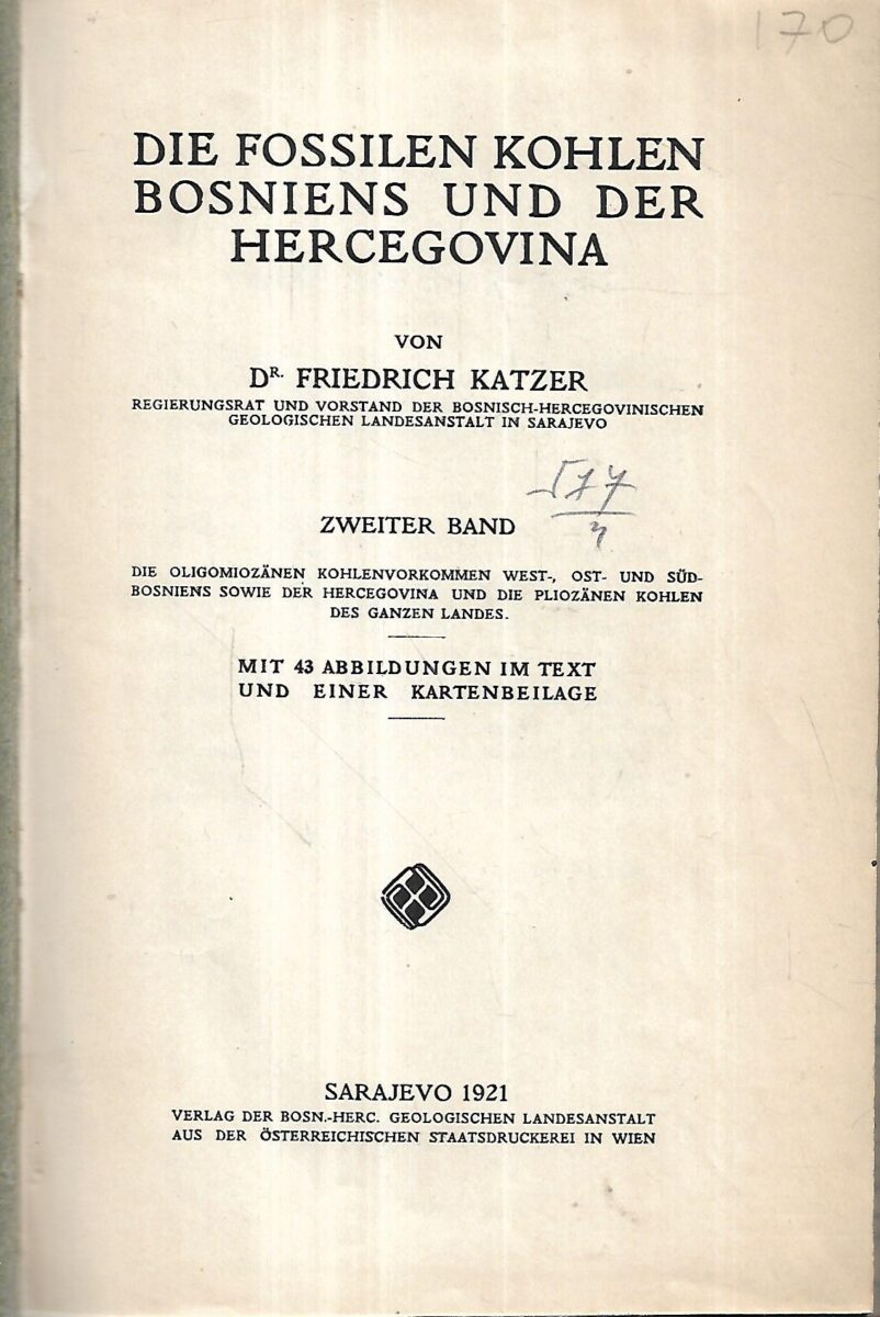 Izdavač i godina: Verlag der Bosn.-Herc.Geologischen Landesanstalt, Sarajevo, 1921.