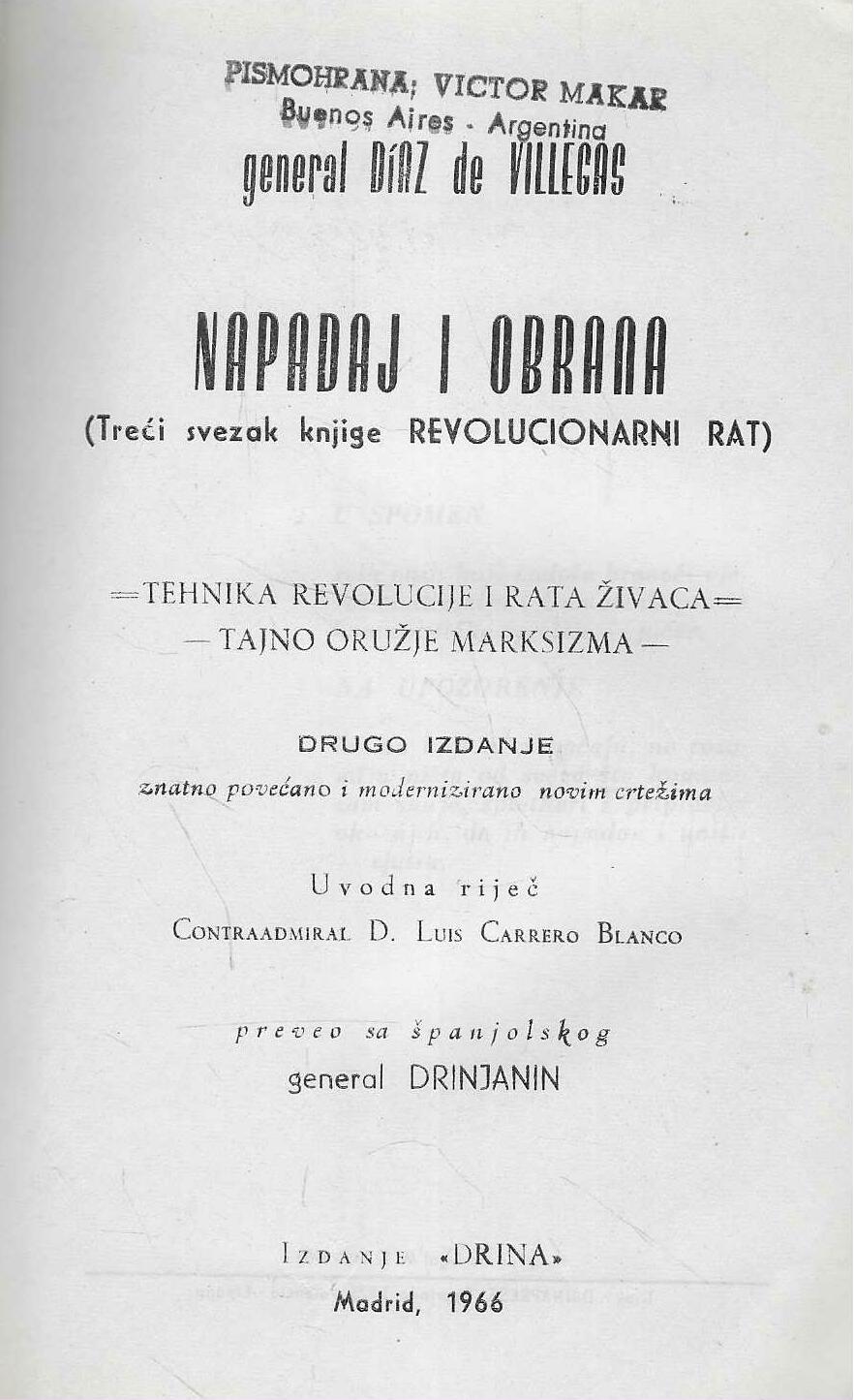 Diaz de Villegas:Napadaj i obrana;(Treći svezak knjige revolucionarni rat. Tehnika revolucije i rata živaca, tajno oružje marksizma;