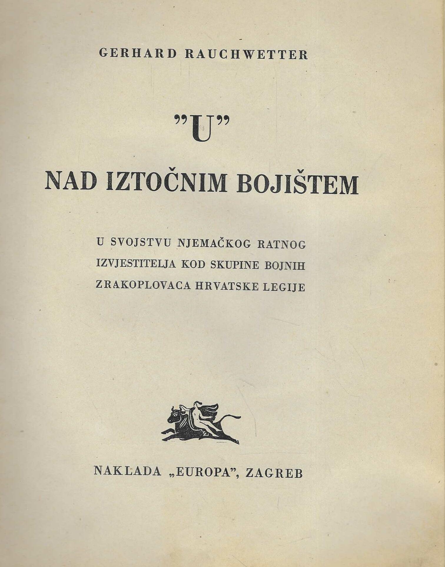 Autor knjige G. Rauchwetter bio je njemački ratni izvjestitelj kod skupine bojnih zrakoplovaca Hrvatske Legije na istočnom bojištu. Izuzetno rijetka knjiga!