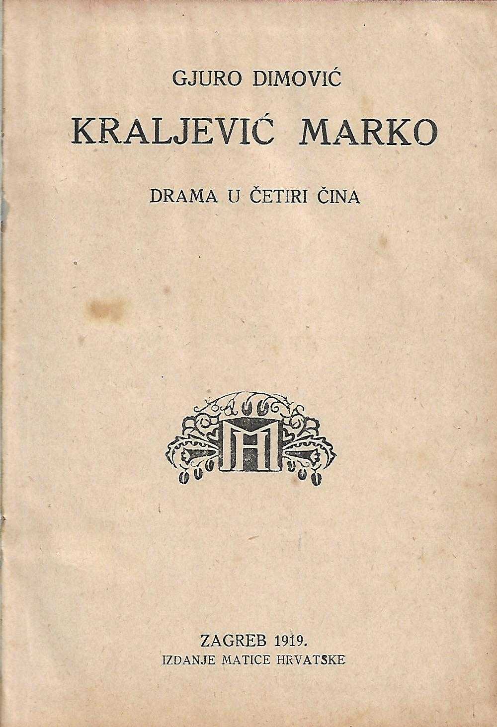 Izdavač i godina: Matica hrvatska, 1919.