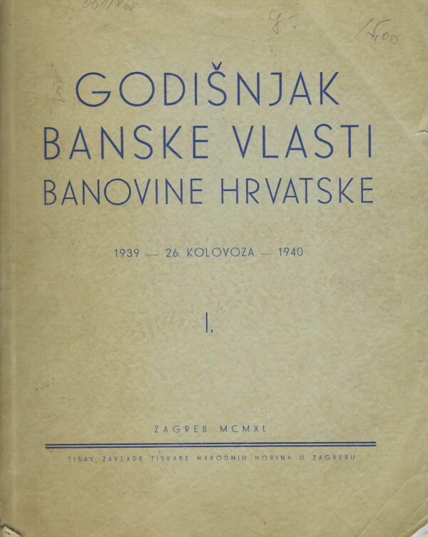 Izdavač i godina: Tisak zaklade Narodnih novina ,1940.