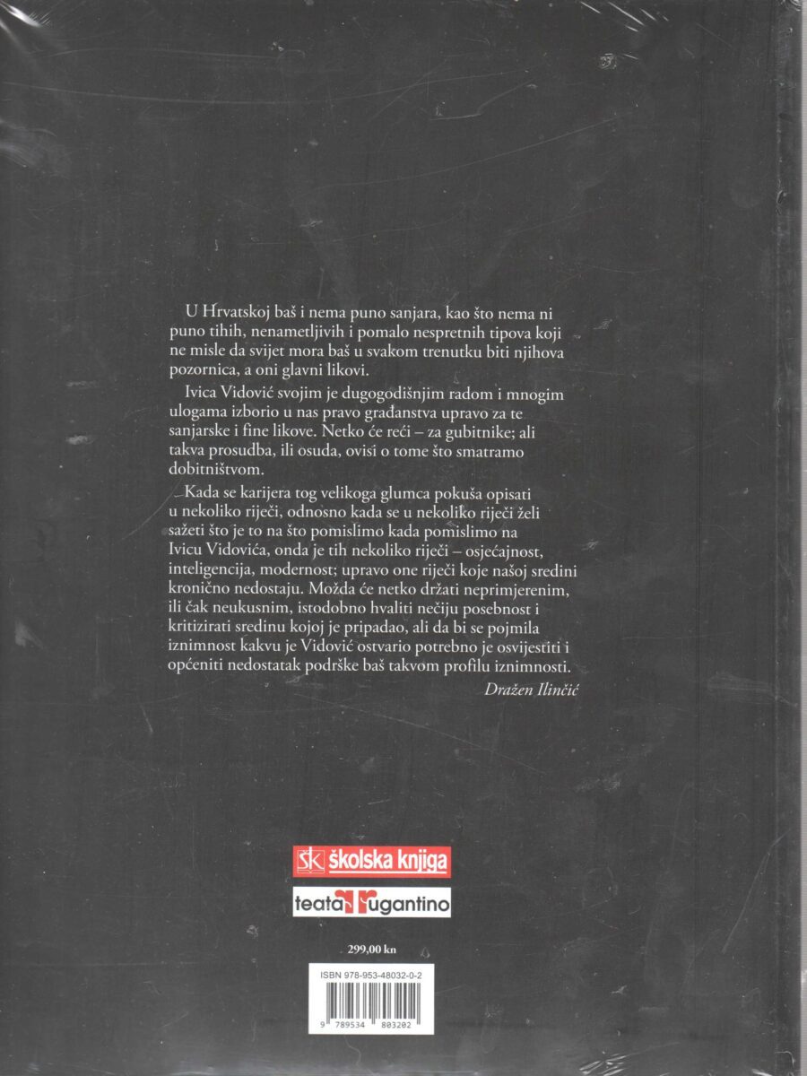 Jednaka pozornost posvećena je kazalištu, filmu i televiziji i to ne samo na hrvatskom već na cjelokupnom kulturnom prostoru bivše Jugoslavije na kojem je Vidović ostvario neizbrisiv trag. Njegove ključne uloge predstavljene su raskošno, tekstualno i fotografski, kroz eseje, kritike, komentare publike, intervjue, memorabilije, a minuciozno i predano je prikupljena i zabilježena ukupno 221 uloga tog velikana hrvatskog glumišta.