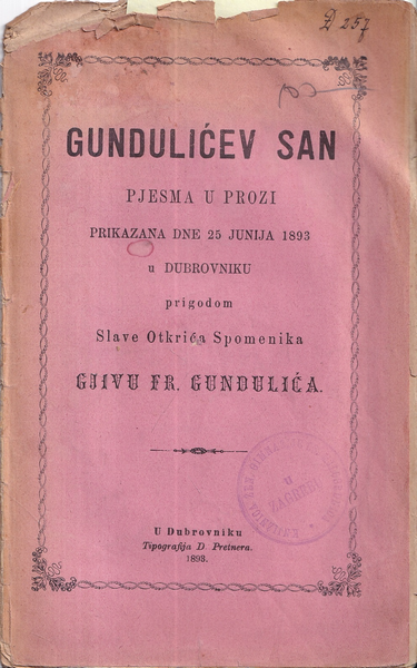 | Izdavač i godina: | DUBROVNIK, 1893. |