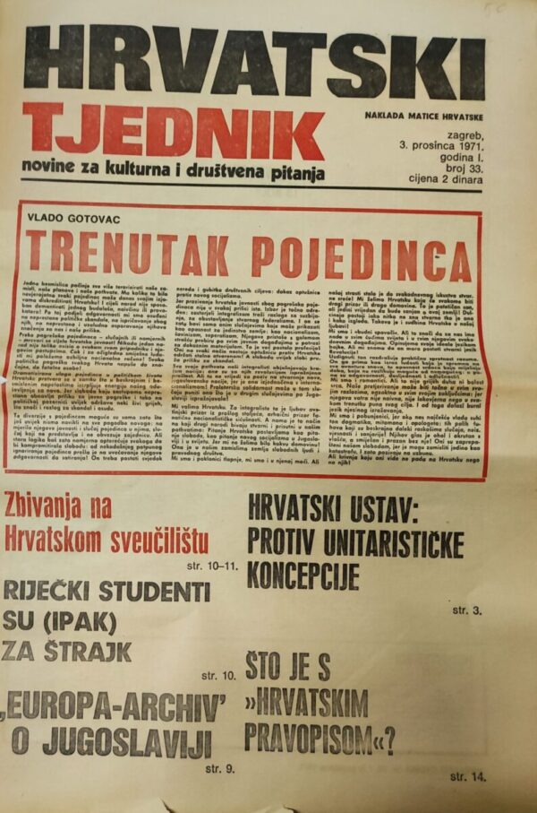 Hrvatski tjednik – novine za kulturna i društvena pitanja 03.12.1971.