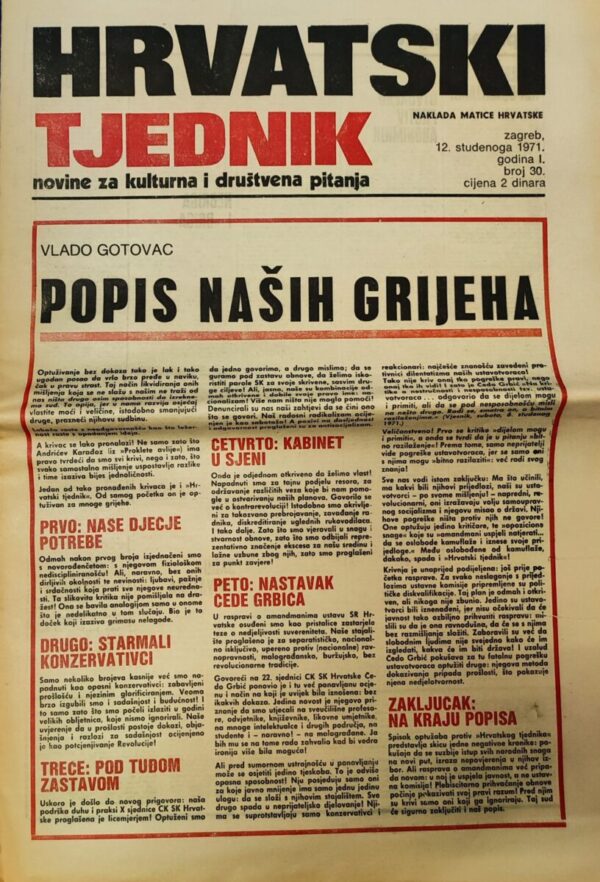 Hrvatski tjednik – novine za kulturna i društvena pitanja 12.11.1971.