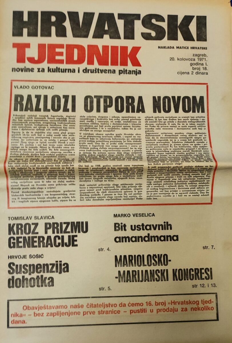 Hrvatski tjednik – novine za kulturna i društvena pitanja 20.08.1971.