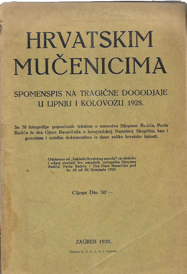 Hrvatskim mučenicima – Spomenpis na tragične dogadjaje u lipnju i kolovozu 1928.