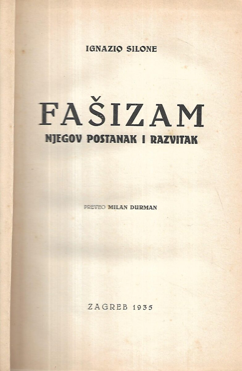 Fašizam. Njegov postanak i razvitak prva je i do danas najcjelovitija analiza talijanskog fašizma i temeljnog ustroja desnih totalitarizama 20. stoljeća. Napisana još tridesetih godina, i dan danas se kao takva pretiskuje u programima velikih svjetskih izdavačkih kuća. Kod nas ju je preveo Milan Durman, a u jednom malom izdanju izašla je 1935. kod Združne štamparije (B. Miletić). Ovo izdanje rekonstruirano je na osnovi jedinih dvaju (krnjih) primjeraka koji postoje u hrvatskim bibliotekama.