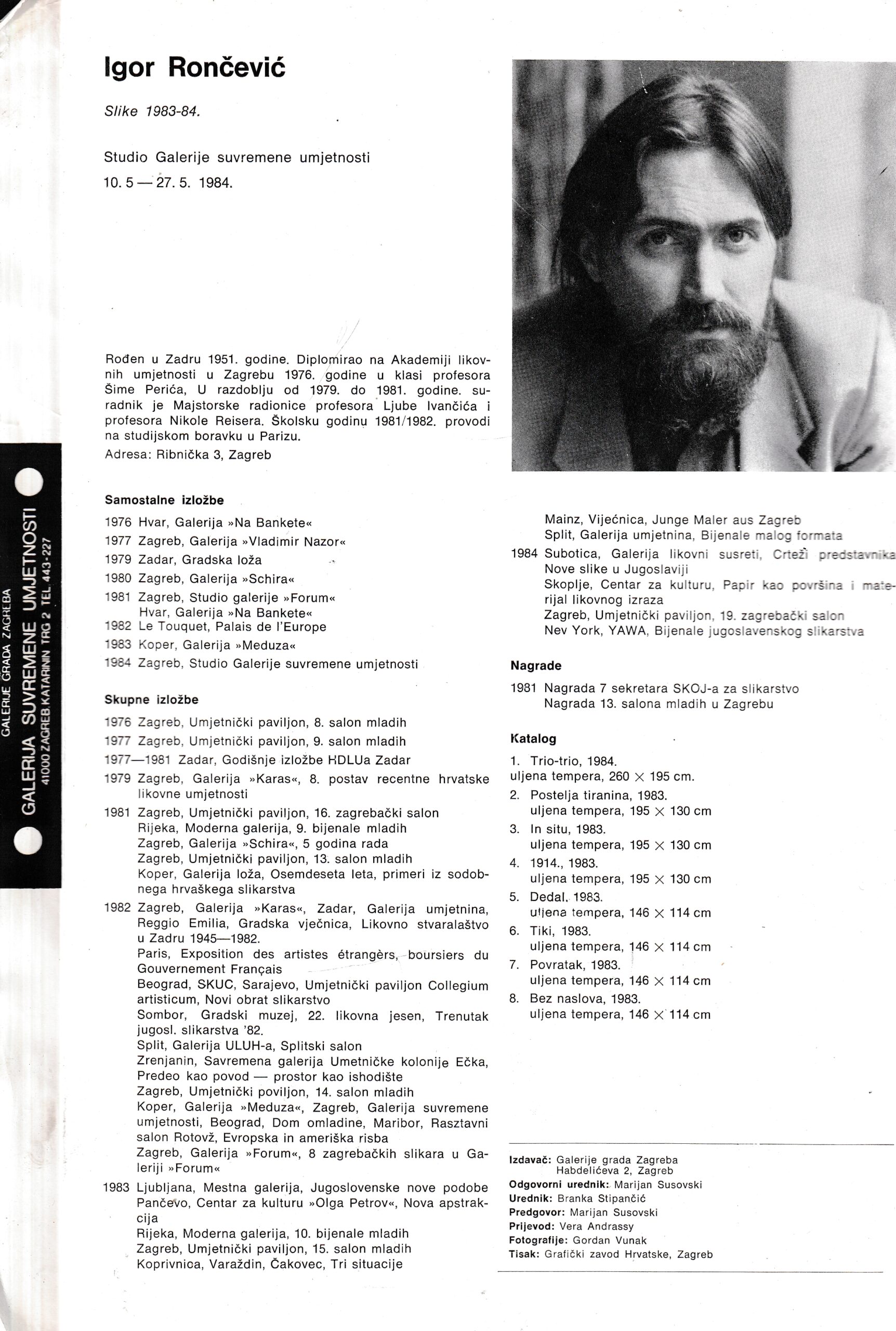 | Izdavač i godina | Galerije grada Zagreba, 1984. |