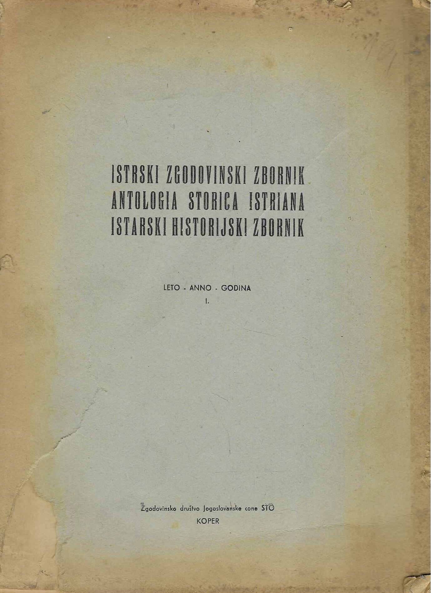Zbornik je izdalo Povijesno društvo Jugoslavenske zone STO-a (Slobodnog teritorija Trsta). Predstavljao je jedan od prvih poslijeratnih stručnih pokušaja sustavnog bavljenja istarskom prošlošću na jezicima naroda koji su tada živjeli u zoni B.