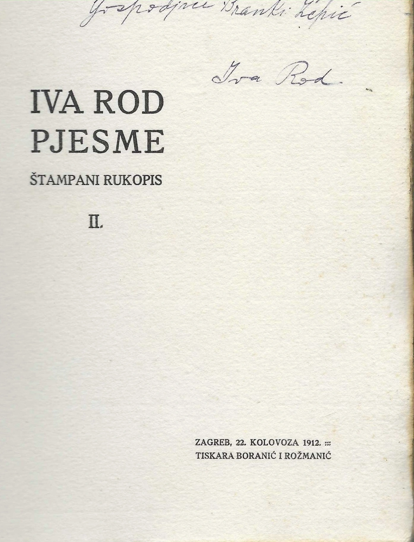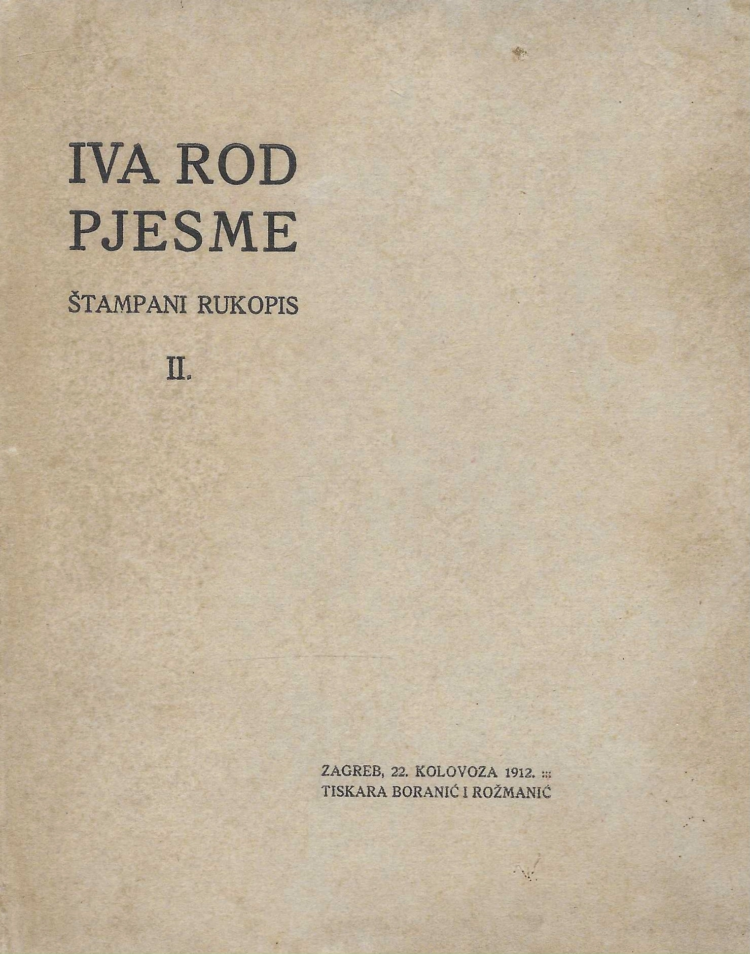 | Izdavač i godina: | TISKARA BORANIĆ I ROŽMANIĆ, 1912. |