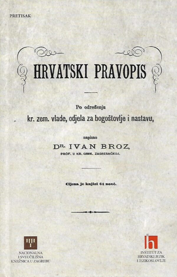 Ivan Broz: Hrvatski pravopis – Po određenju kr. zem. vlade, odjela za bogoštovlje i nastavu – pretisak