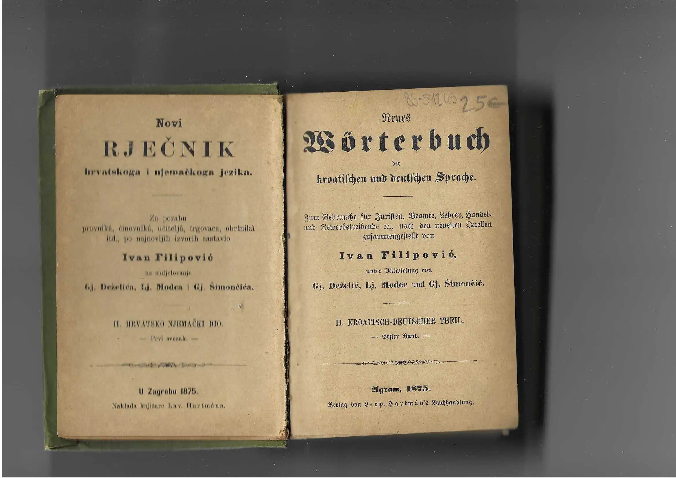 Novi rječnik hrvatskoga i njemačkoga jezika – Neues Wörterbuch der kroatischen und deutschen Sprache.