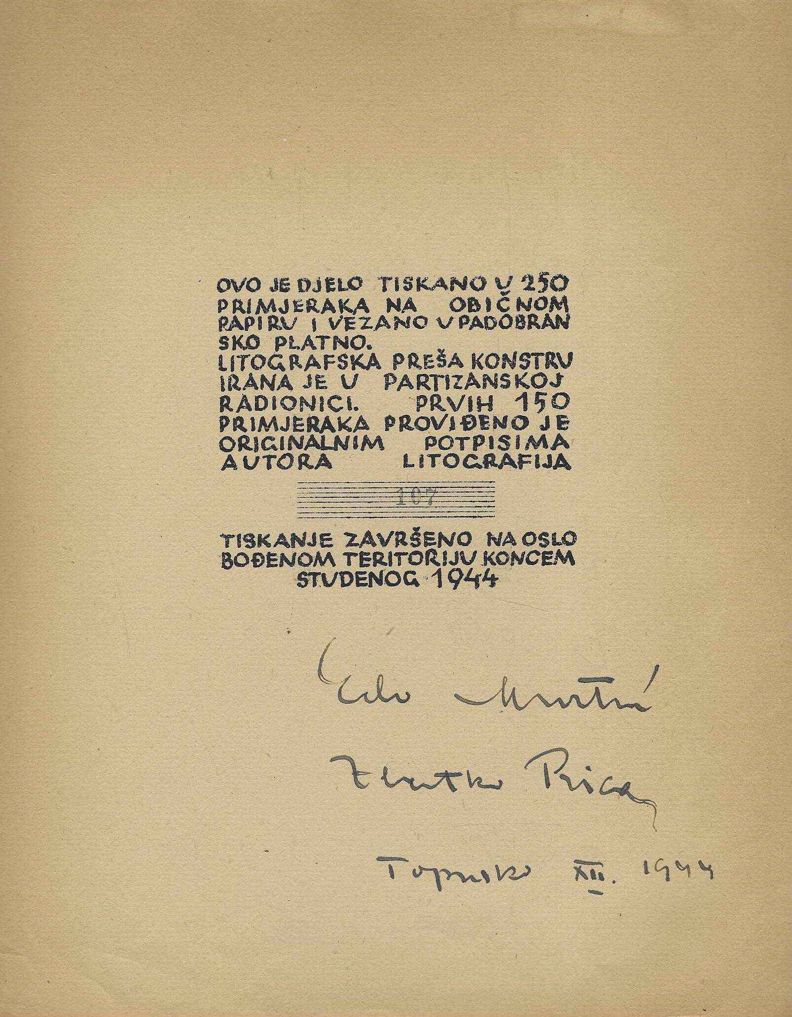 Primjerak je redni broj 107 / 250 s originalnim potpisom litografa.
