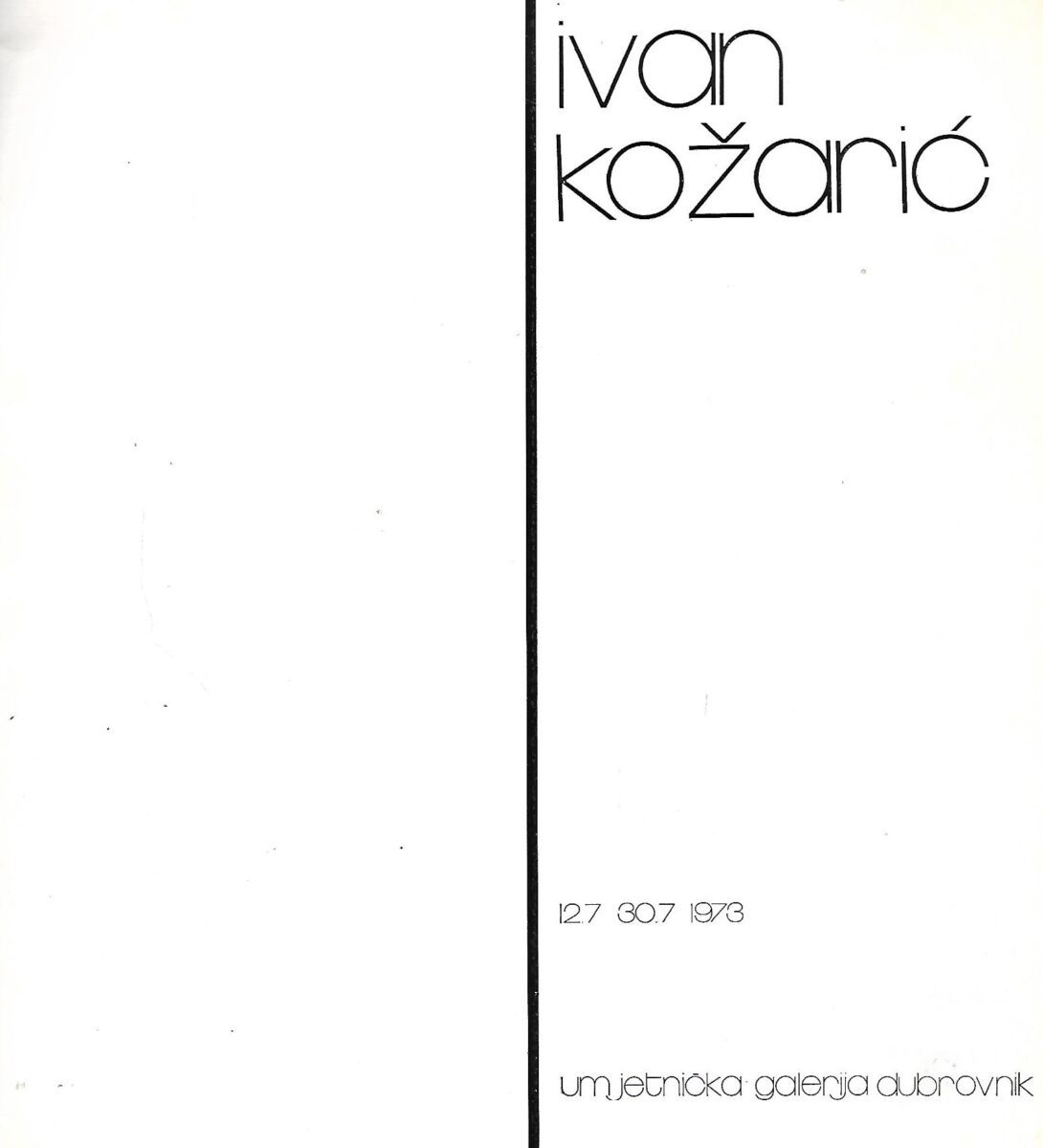 Izdavač i godina: Umjetnička galerija Dubrovnik, 1973.