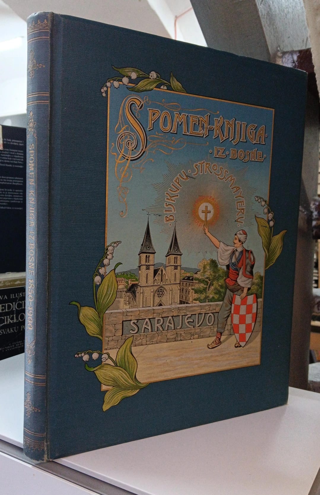 Tisak Antun Scholz, naklada Kaptola vrhbosanskoga. Zagreb 1901. I. izdanje. Urednik Ivan Šarić, kanonik vrhbosanski. Spomen knjiga bila je izdana u spomen pedesete obljetnice biskupovanja Josipa Jurja Strossmayera. Prvi dio spomen-knjige posvećen je životu i djelu biskupa Strossmayera, drugi dio je povijesni pregled bosanske biskupije iz pera Aleksandra Hoffera, treći koji govori o katoličkoj crkvi u Bosni napisao je fra Ignacij Strukić, a četvrti kojemu je autor Milko Cepelić opisuje stolnu crkvu tj. katedralu u Đakovu. Tekstovi su popraćeni prigodnim spjevovima fra Grge Martića, Tugomira Alaupovića i drugih autora. Knjiga je ilustrirana s gotovo 150 crno-bijelih fotografija koje su gledajući iz današnje perspektive prvorazredan fotodokumentarni materijal. Fotografije je izradio Stjepan Osak iz Sarajeva.
