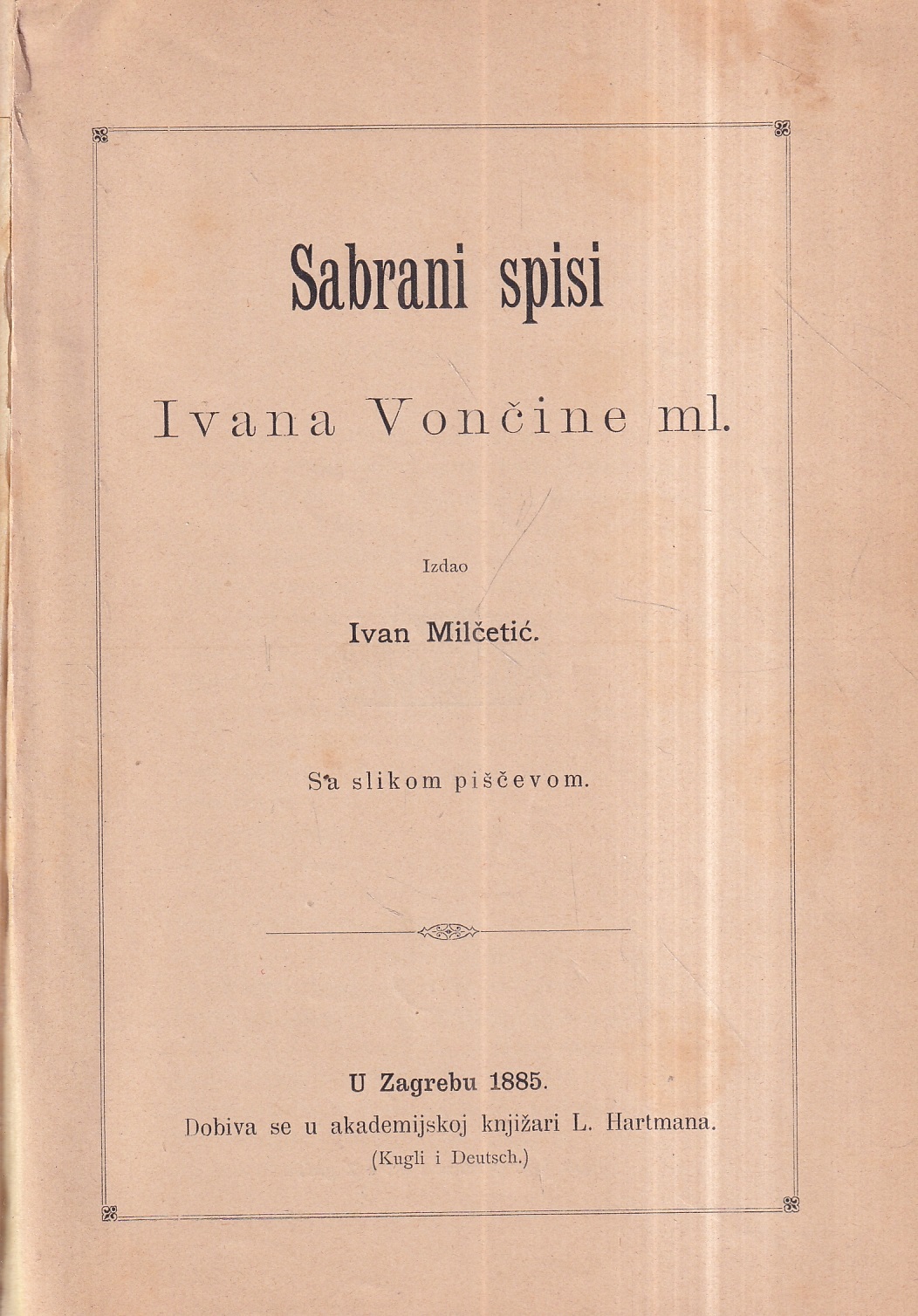 | Izdavač i godina: | KNJIŽARA L. HARTMANA, 1885. |