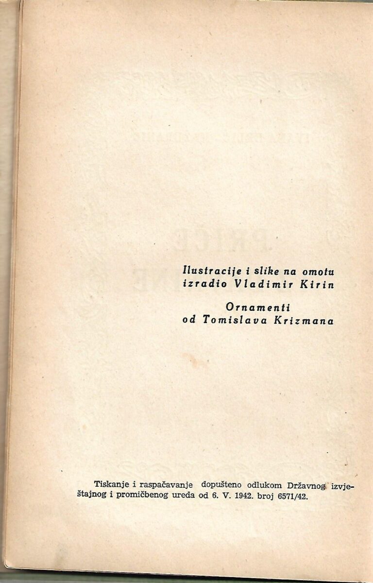 Izdavač i godina: Knjižara Radoslava Horvata, 1942.