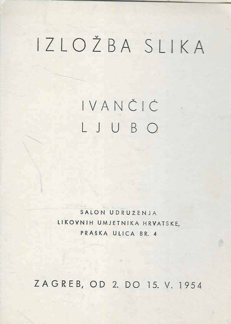 | Izdavač i godina: | Salon udruženje likovnih umjetnika Hrvatske, 1954. |