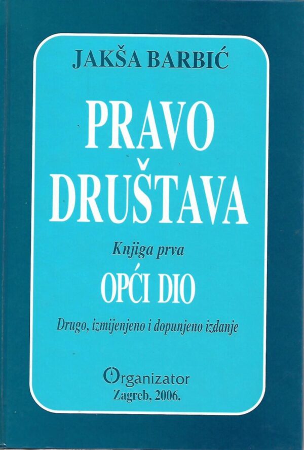 Jakša Barbić: Pravo društava, knjiga prva – Opći dio