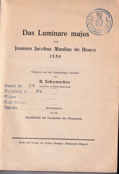 Izdavač i godina: Gesellschaft fur Geschichte der Pharmazie, 1936.