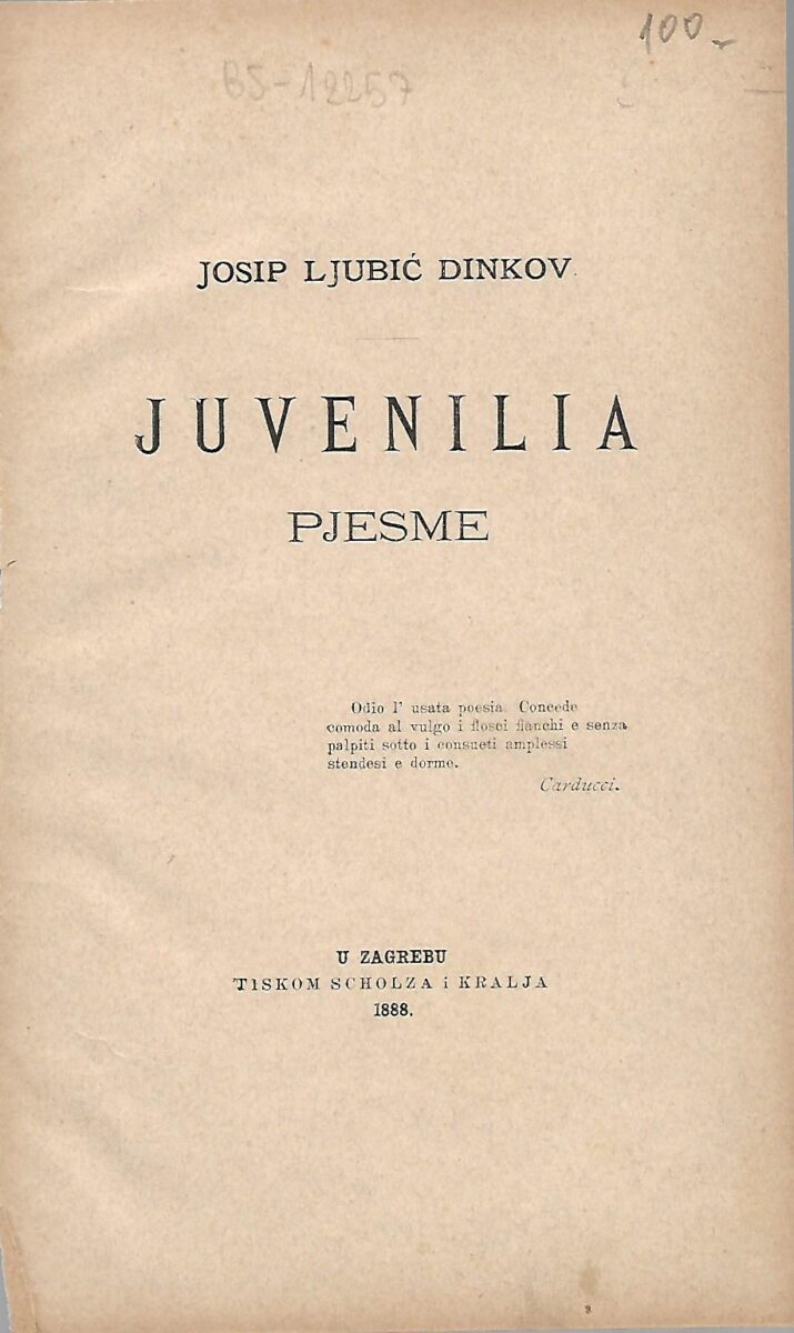 Josip Ljubić Dinkov: Juvenilia – pjesme