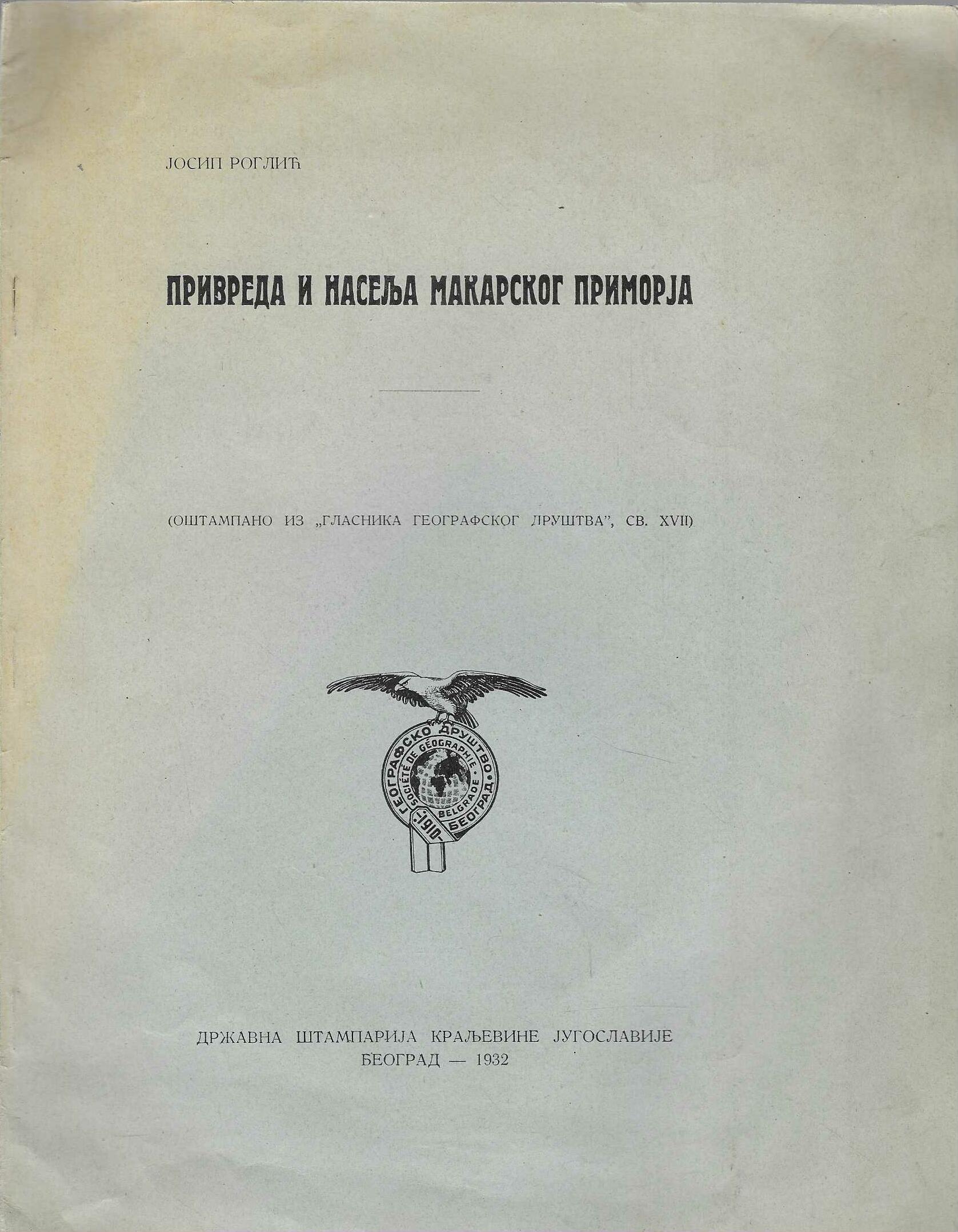 | Izdavač i godina: | Državna štamparija Kraljevine Jugoslavije, Beograd 1932. |