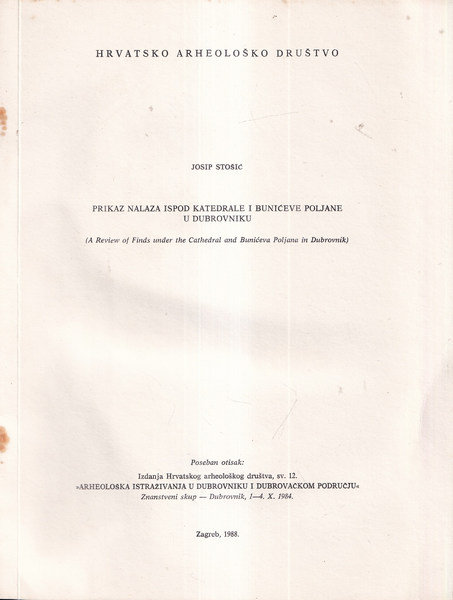 | Izdavač i godina: | IZDANJE HRVATSKOG ARHEOLOŠKOG DRUŠTVA, 1988. |