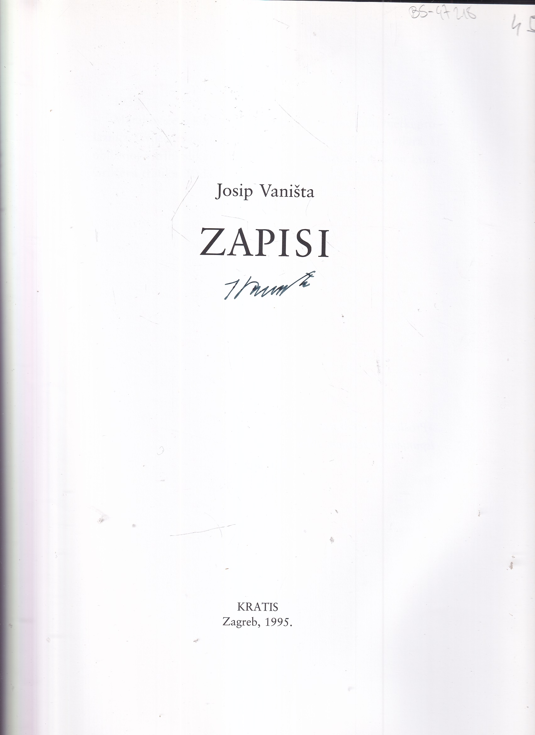Josip Vaništa: Zapisi