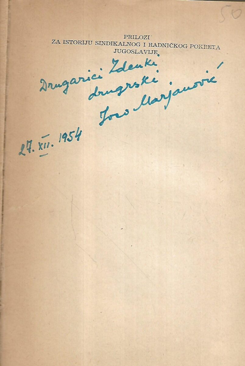 Jovan Marjanović: Nastanak i razvitak radničkog pokreta u jugoslovenskim zemljama do 1.svjetskog rata – s potpisom Jovana Marjanovića
