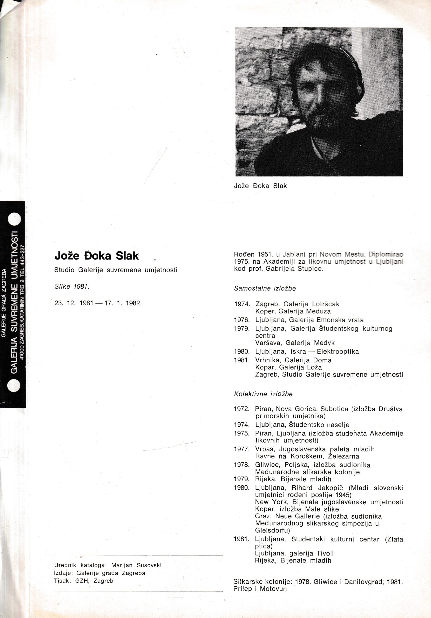 | Izdavač i godina | Galerije grada Zagreba, 1982. |