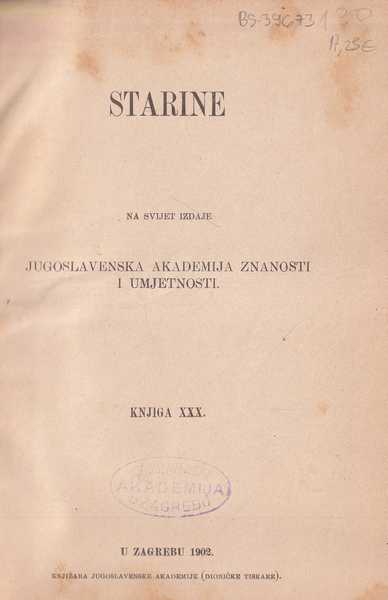 | Izdavač i godina | Jugoslavenska akademija znanosti i umjetnosti, 1902. |