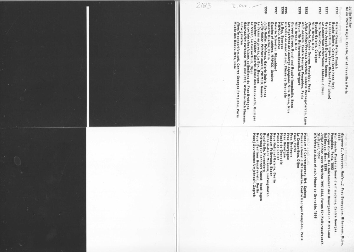 Julije Knifer, katalog izložbe , Galerie Frank 1959-199. 01.04.-29.05.1999.