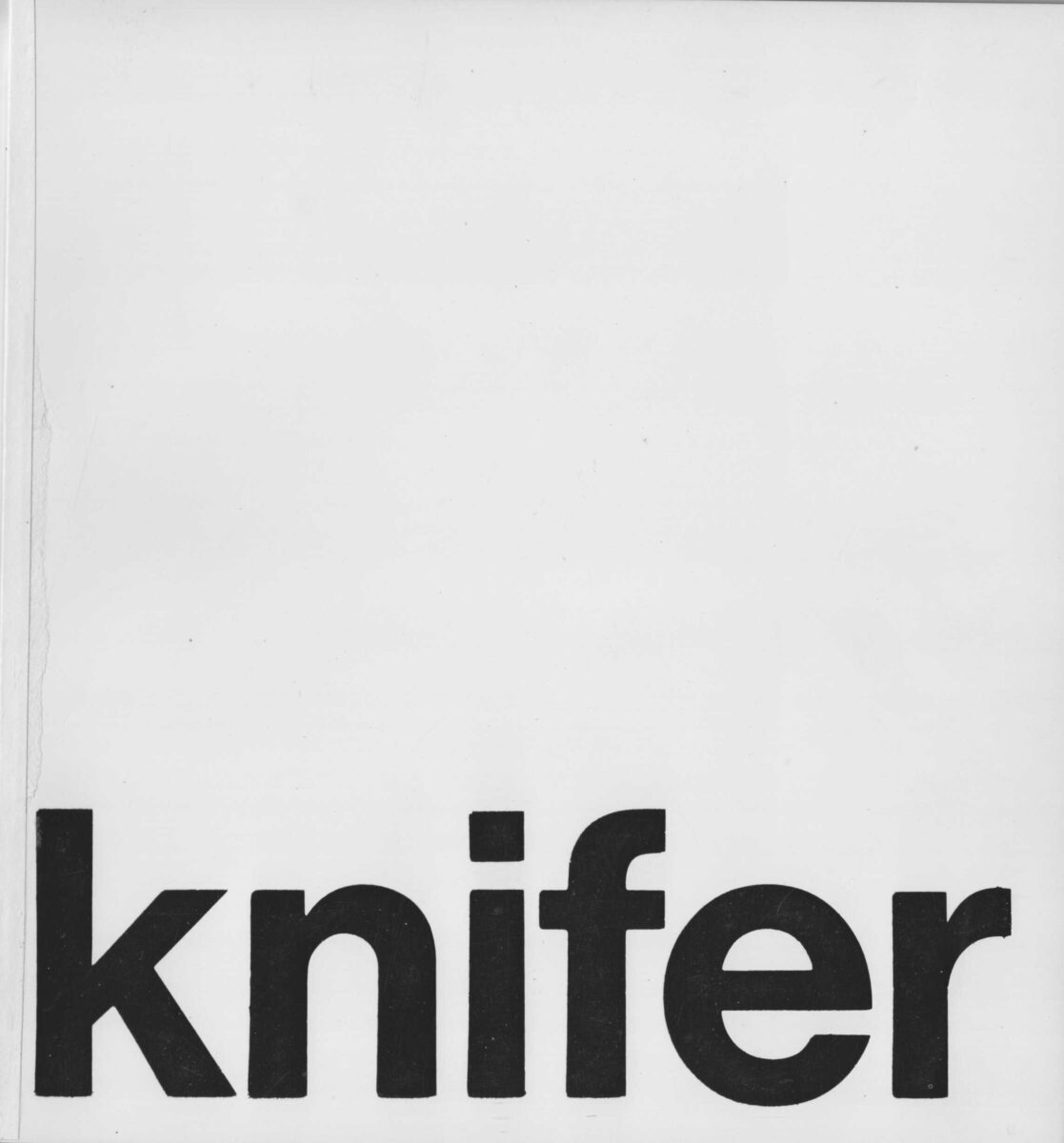 JulijeKnifer, 24.11.-13.12.1970. Galerija suvremene umjetnosti, Zagreb. Katalog izložbe održane u Galeriji suvremene umjetnosti 1970. godine. Tisakn je u 500 primjeraka. Stanje: odlično.