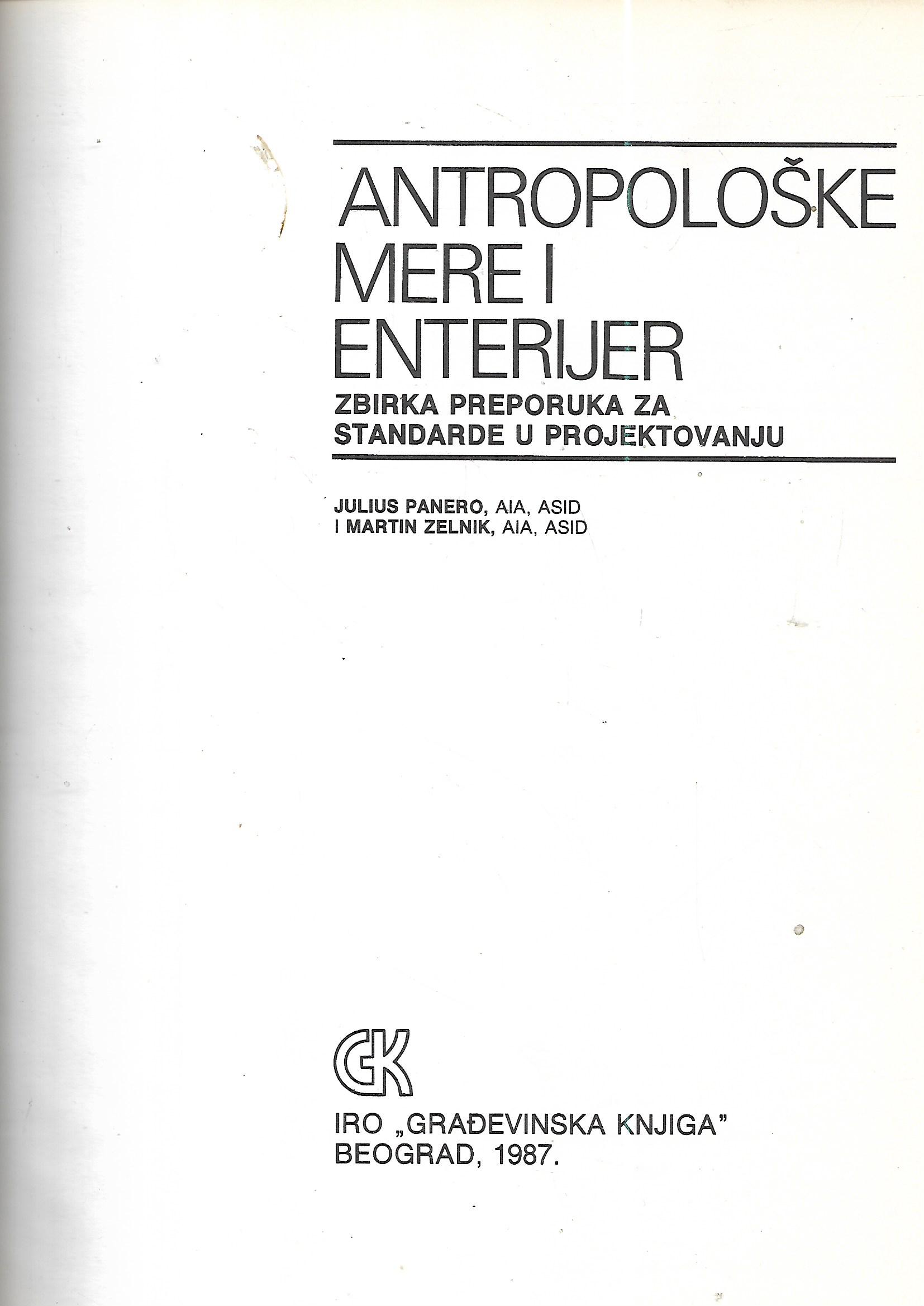 Julius Panero, Martin Zelnik:Antropološke mere i enterijer : zbirka preporuka za standarde u projektovanju