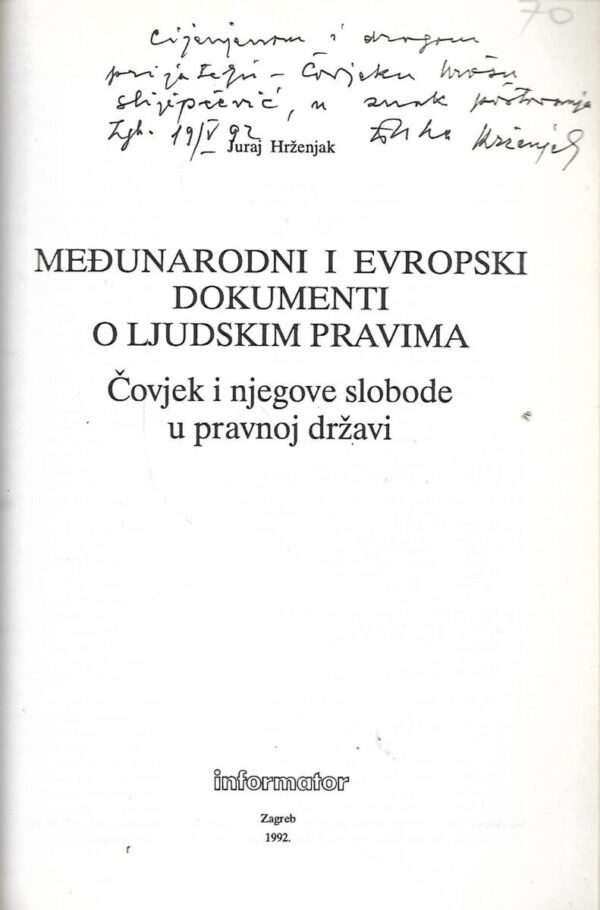 Juraj Hrženjak: Međunarodni i evropski dokumenti o ljudskim pravima – s potpisom Juraja Hrženjaka