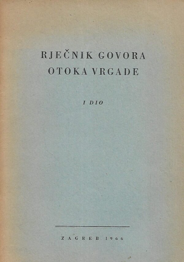 Jurišić Blaž: Rječnik govora otoka Vrgade I. dio