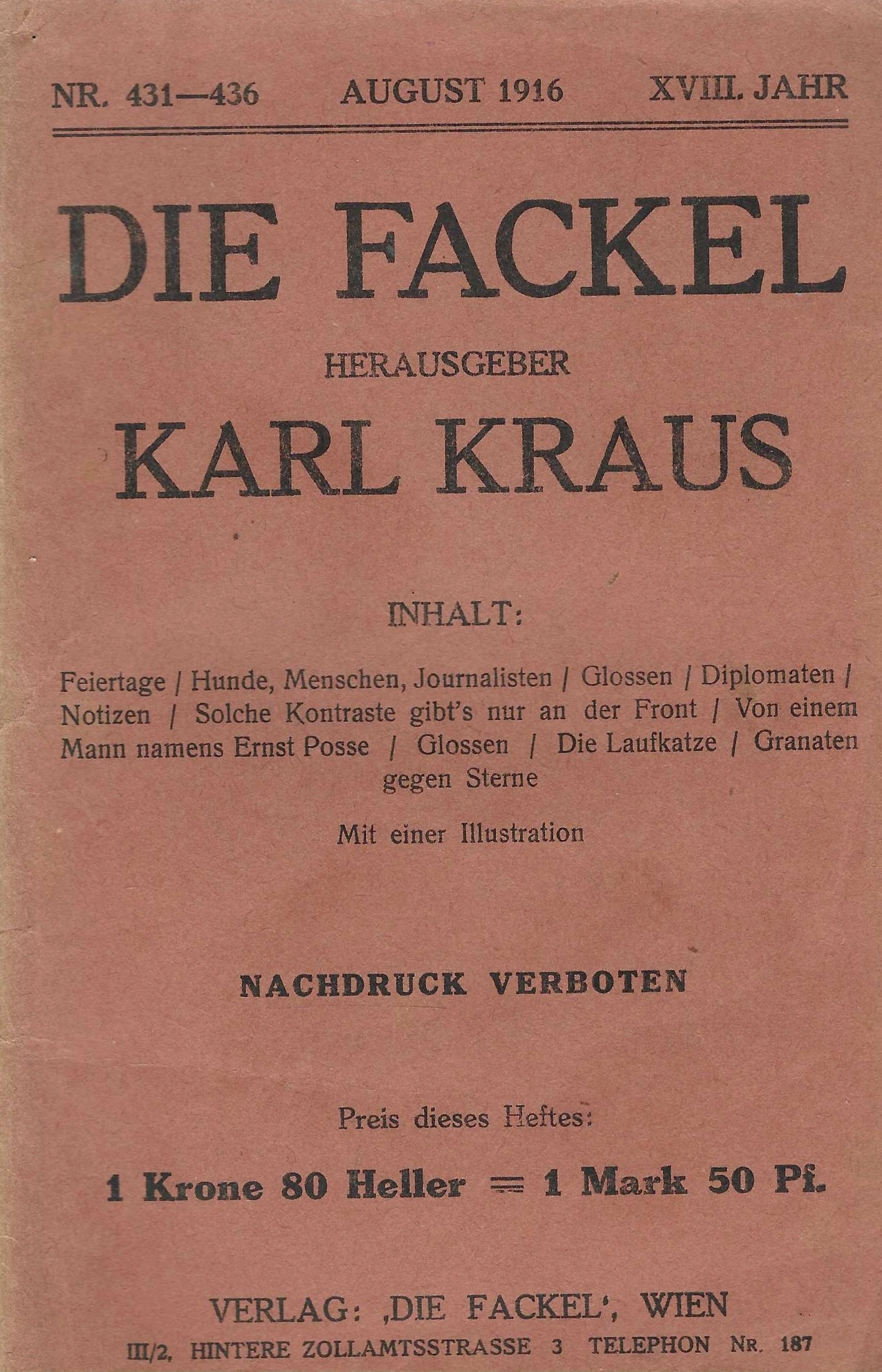 | Izdavač i godina: | DIE FACKEL, 1916. |