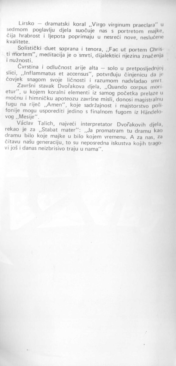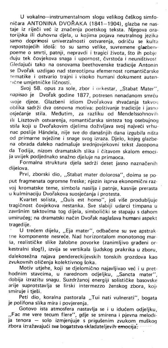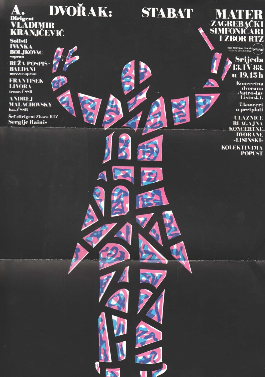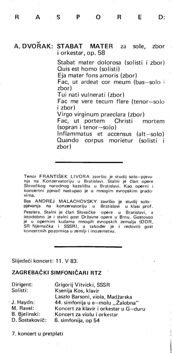 Kartolina – A. Dvorak: Stabat Mater, Zagrebački simfoničari i zbor RTZ. Najava za koncert 08.04.1983. Koncertna dvorana Vatroslav Lisinski, Zagreb