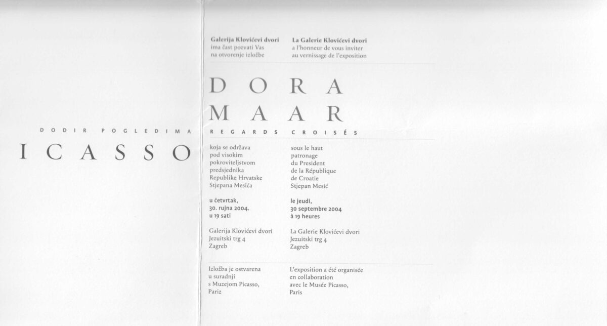 Kartolina – Dora Maar, Dodir pogledima Picassa. Galerija Klovićevi dvori 30.09.2004.