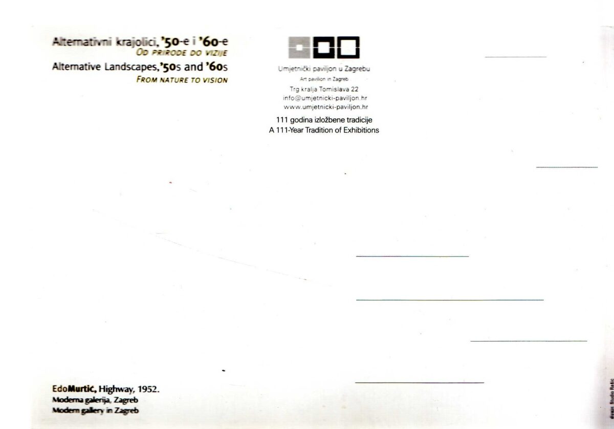 Kartolina – Alternativni krajolici, ´50-e i 60`-e Od prirode do vizije. Umjetnički paviljon u Zagrebu. 111 godina izložbene tradicije.