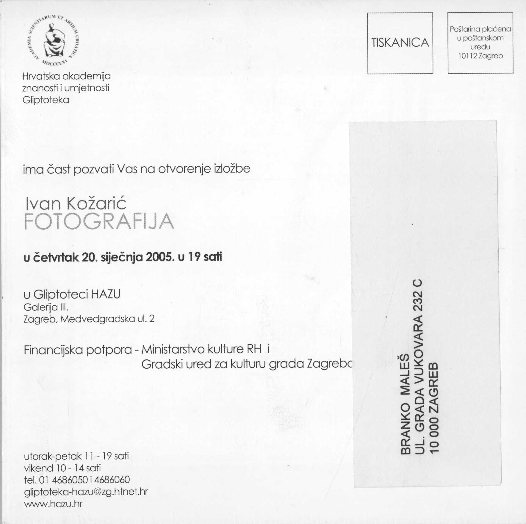 Kartolina – Ivan Kožarić, Fotografija. 20.01.2005.