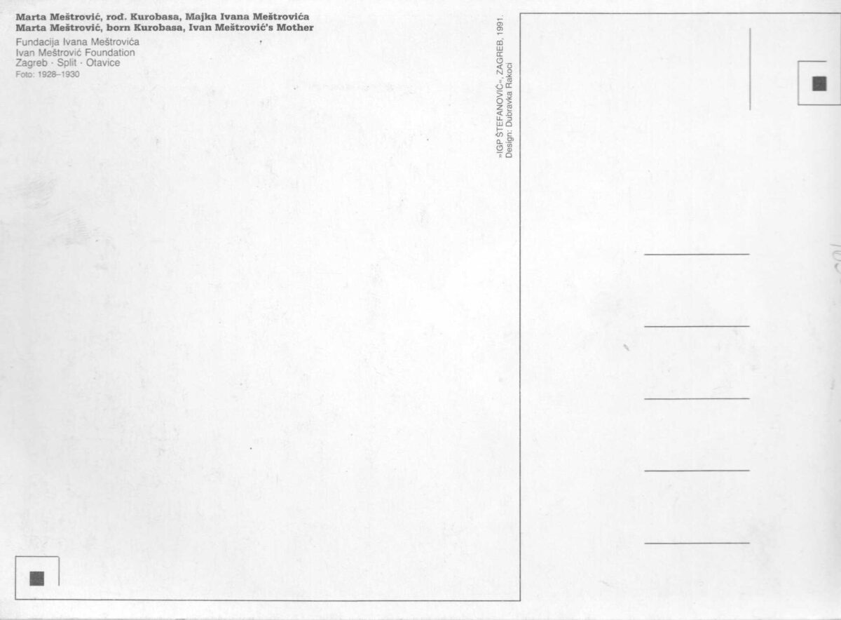 Kartolina – Marta Meštrović, rođ. Kurobasa, Majka Ivana Meštrovića Foto: 1928-1930. Fundacija: Ivan Meštrović, Zagreb-Split-Otavice